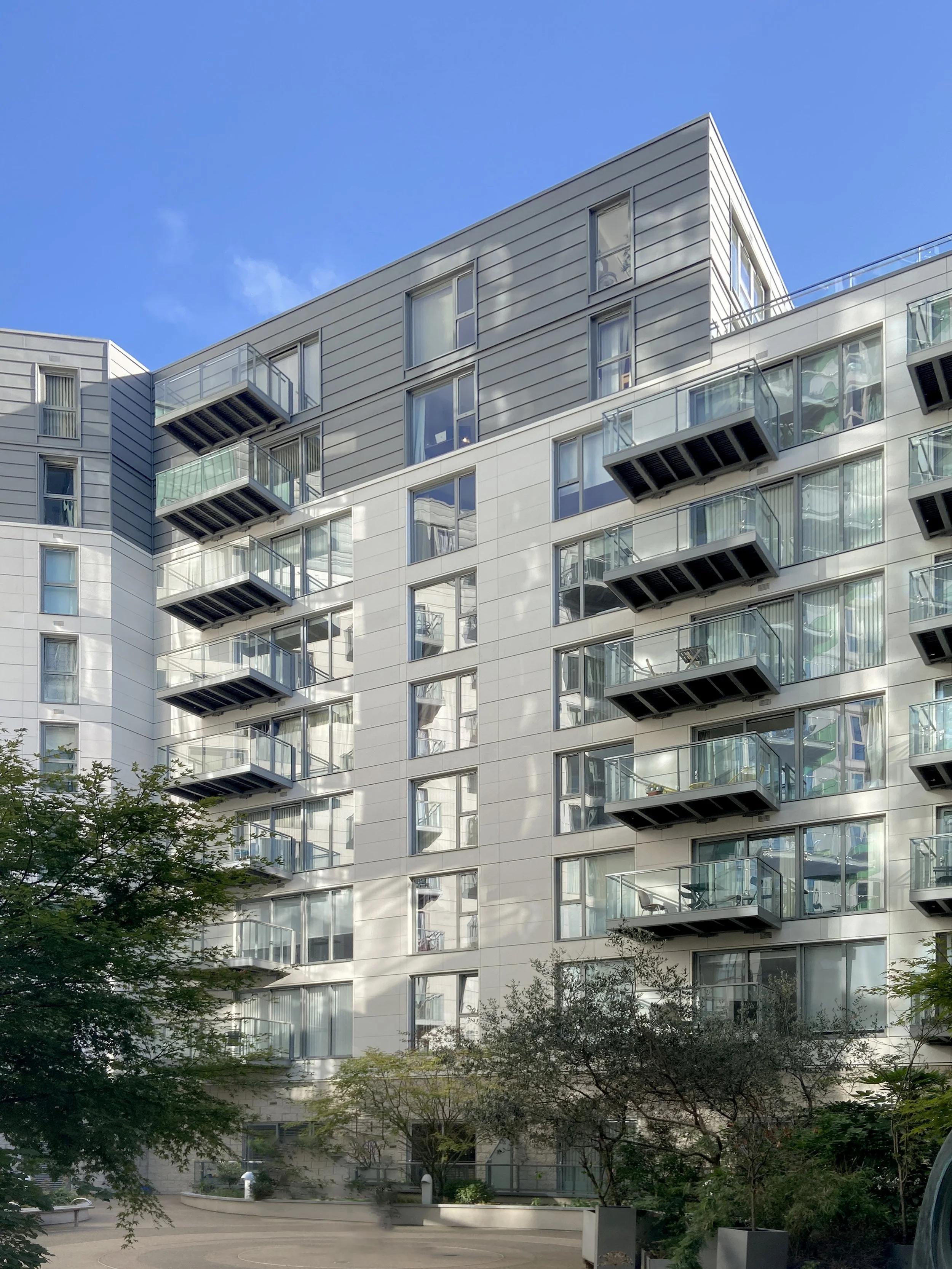 Within the technically complex remediation, combustable insulation was removed, non-combustable insulation installed, fire barriers were appropriately set and the stone and zinc rain-screen facades were finally reinstated. Decking and secondary support structure to balconies were also replaced with non combustable components. Soffits to inset balconies were also remediated within the works. Following the completion of the works, drawings were prepared in collaboration with the fire engineer for inclusion in the fire brigade information boxes.