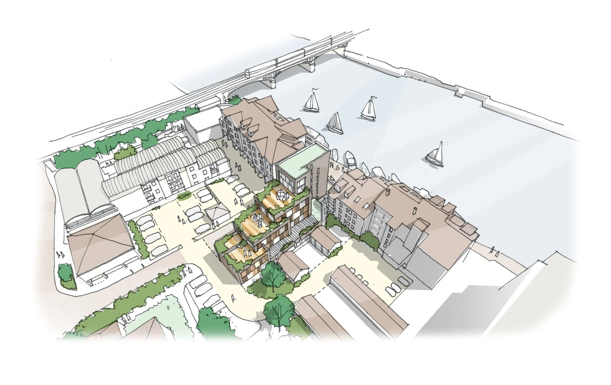 The facade treatment of the wider scheme has been conceived holistically with materials such as brick and timber, responding to use, outlook and orientation. Facing the river, the vertical grain of the riverside properties is retained; constructed in materials which ensure compatibility and enduring quality. The scheme will convey a contextual sensibility which will be a positive addition to the ever developing riverfront architecture.